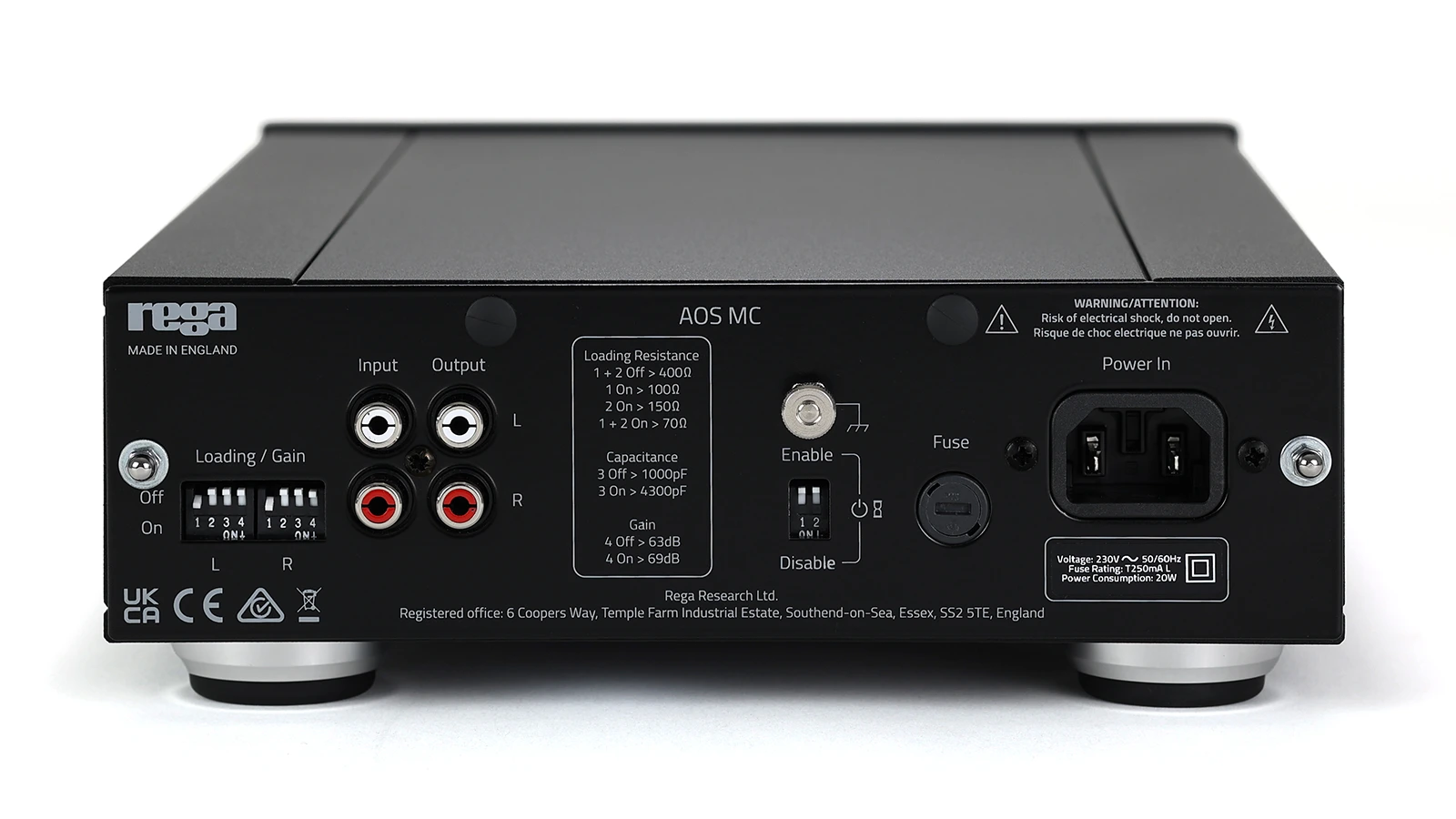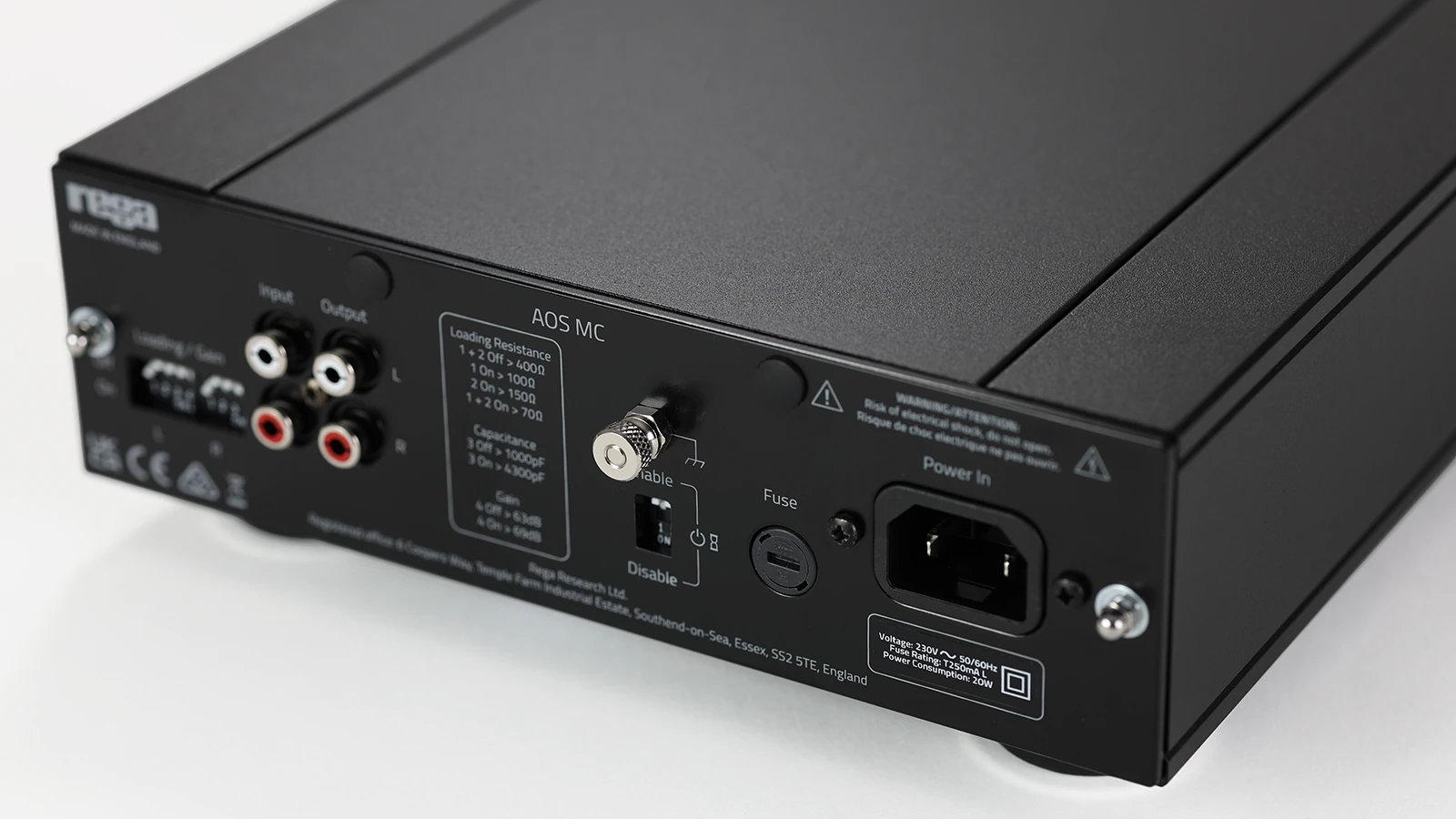 Der AOS ist ein „rein analoger Verstärker“ ohne digitale Steuerschaltungen. Das vollständig aus Aluminium gefertigte Gehäuse schirmt die interne Schaltung gegenüber Störsignalen (RFI) ab. Rega Entwickler haben bewusst auf unnötige Bauteile oder Schaltungen verzichtet, die den Signalweg beeinträchtigen könnten.
